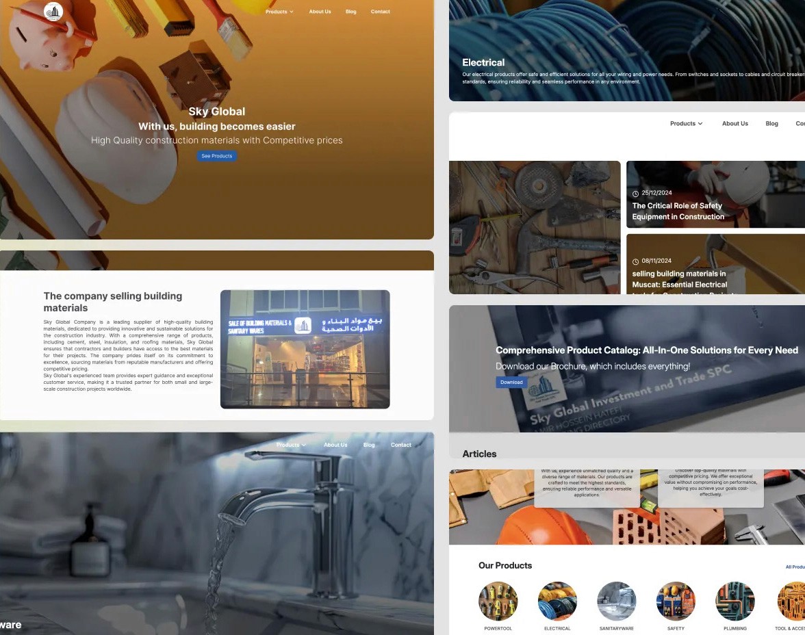 📋SkyGlobal’s website is an e-commerce platform based in Muscat, Oman, that provides a wide selection of construction materials. The platform serves both residential and commercial construction needs, offering items ranging from basic materials like concrete and lumber to more specialised building tools. SkyGlobal is committed to delivering quality and reliability at every stage of the construction process — empowering builders, contractors, and homeowners with dependable support from planning to completion.